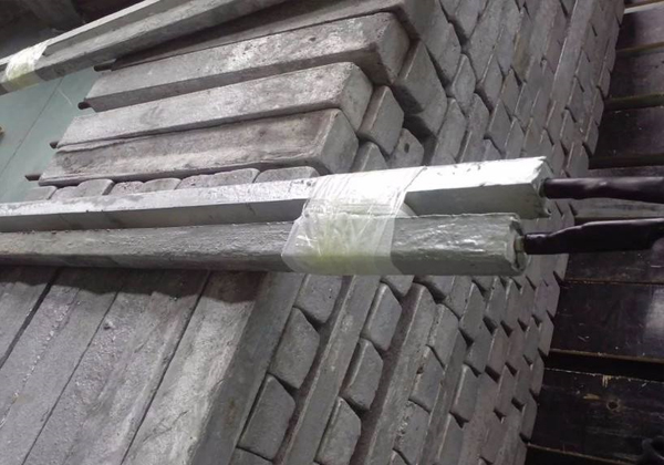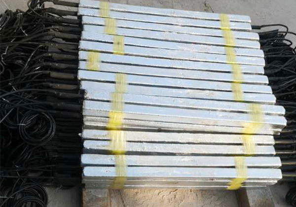 我公司生產(chǎn)的鋅接地電池由平行靠近的一對或四支鋅合金犧牲陽極棒組成,中間用絕緣墊塊隔開,然后一起裝在裝有填包料的棉布袋中,通過引出電纜焊接在絕緣裝置(絕緣接頭或法蘭)的兩側(cè),以防止強(qiáng)電沖擊引起的損壞,同時日常情況下接地電池也可對管道起保護(hù)作用。